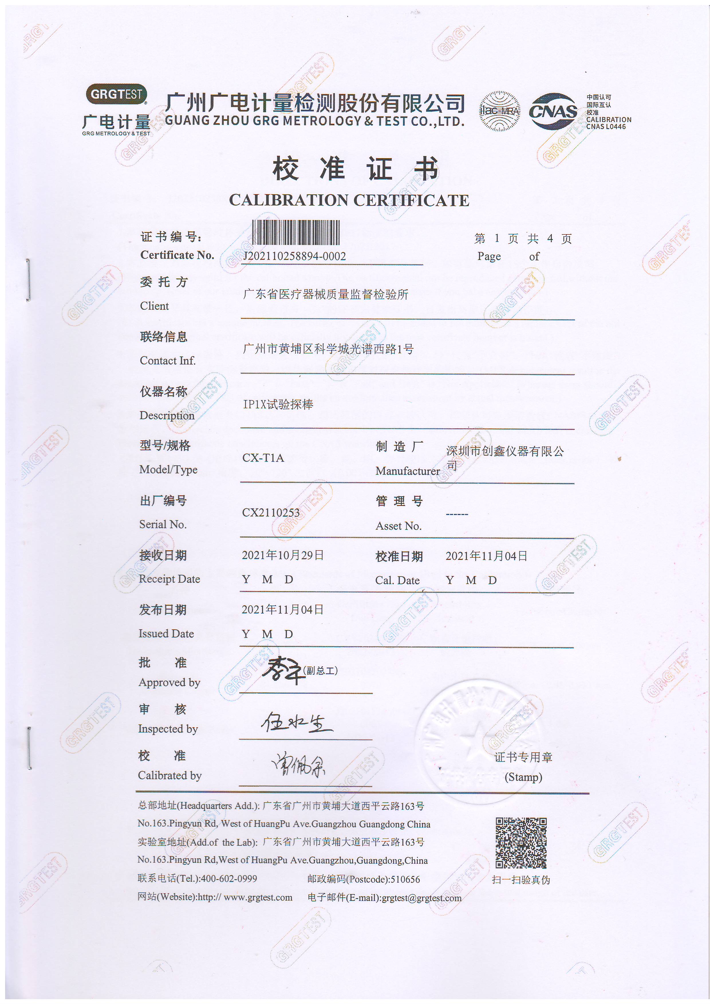 慶祝我司與2021年11月廣東省醫(yī)療器械質(zhì)量昨檢驗(yàn)所合作成功