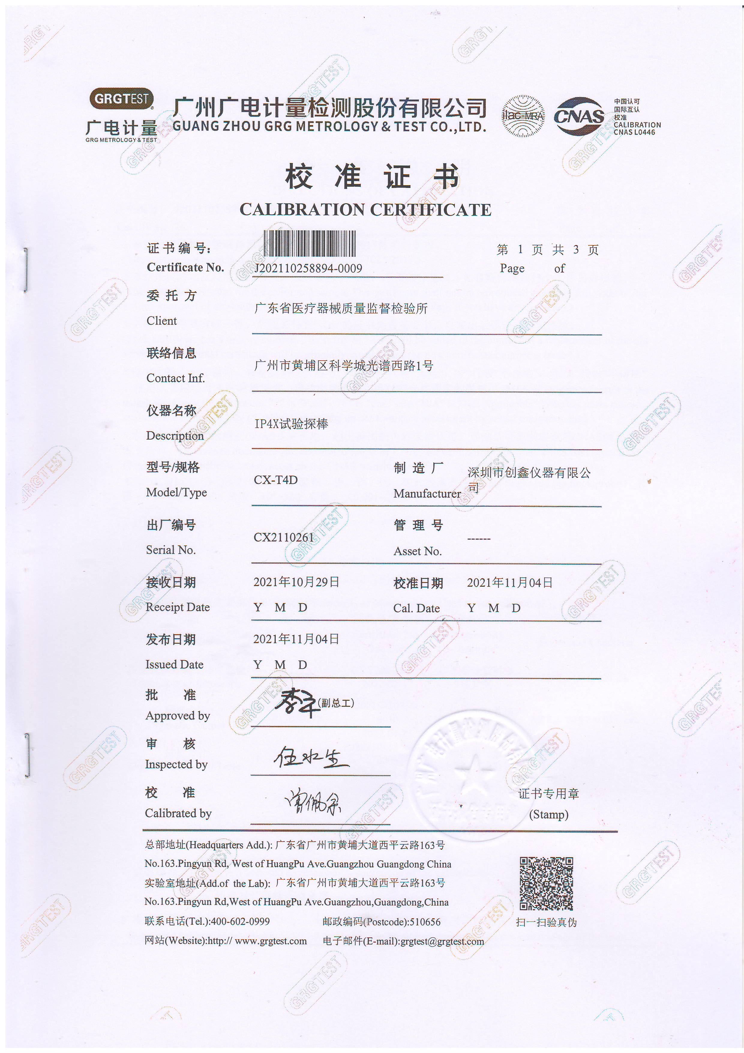 符合GB4706、GB2099、GB4943、GB4208IPX2、GB3883圖1、IEC61032圖2試具B、IEC950圖2A、IEC60884、IEC60335、GB/T16842試具B、UL507、EN60529圖1、UL1278圖8.4等標(biāo)準(zhǔn)要求。用于防止手指觸及或防觸電檢驗(yàn)的防護(hù)檢驗(yàn)。