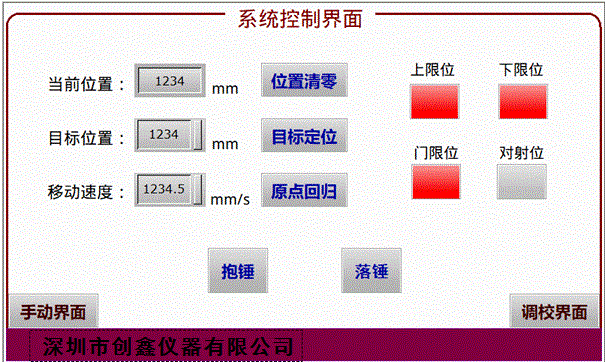 傳動(dòng)系統(tǒng)通過(guò)PLC控制,帶動(dòng)繼電器進(jìn)行電機(jī)的正反轉(zhuǎn),達(dá)到錘提升下降到預(yù)置高度。