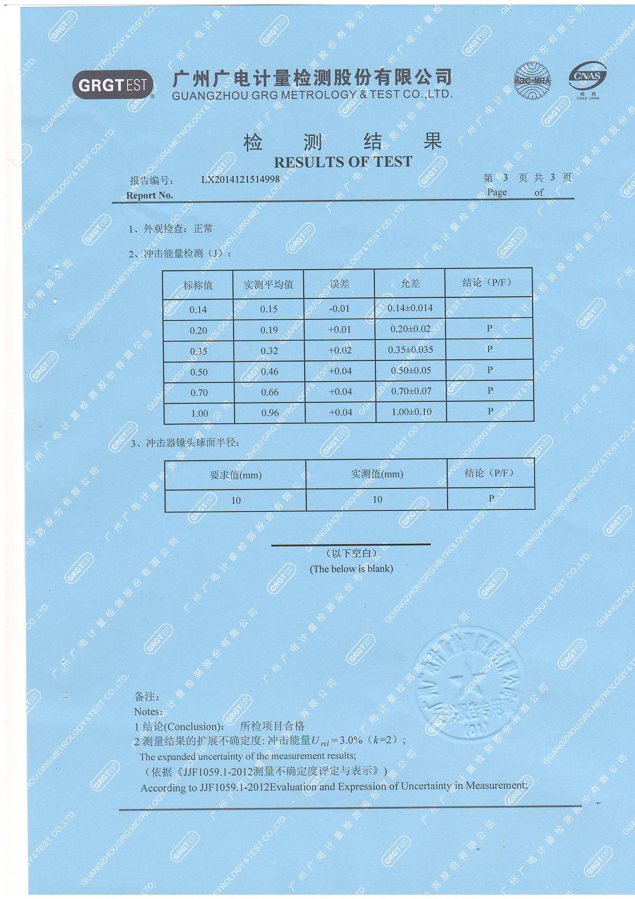 萬用型彈簧沖擊錘(六檔可調(diào))權(quán)威機構(gòu)計量證書